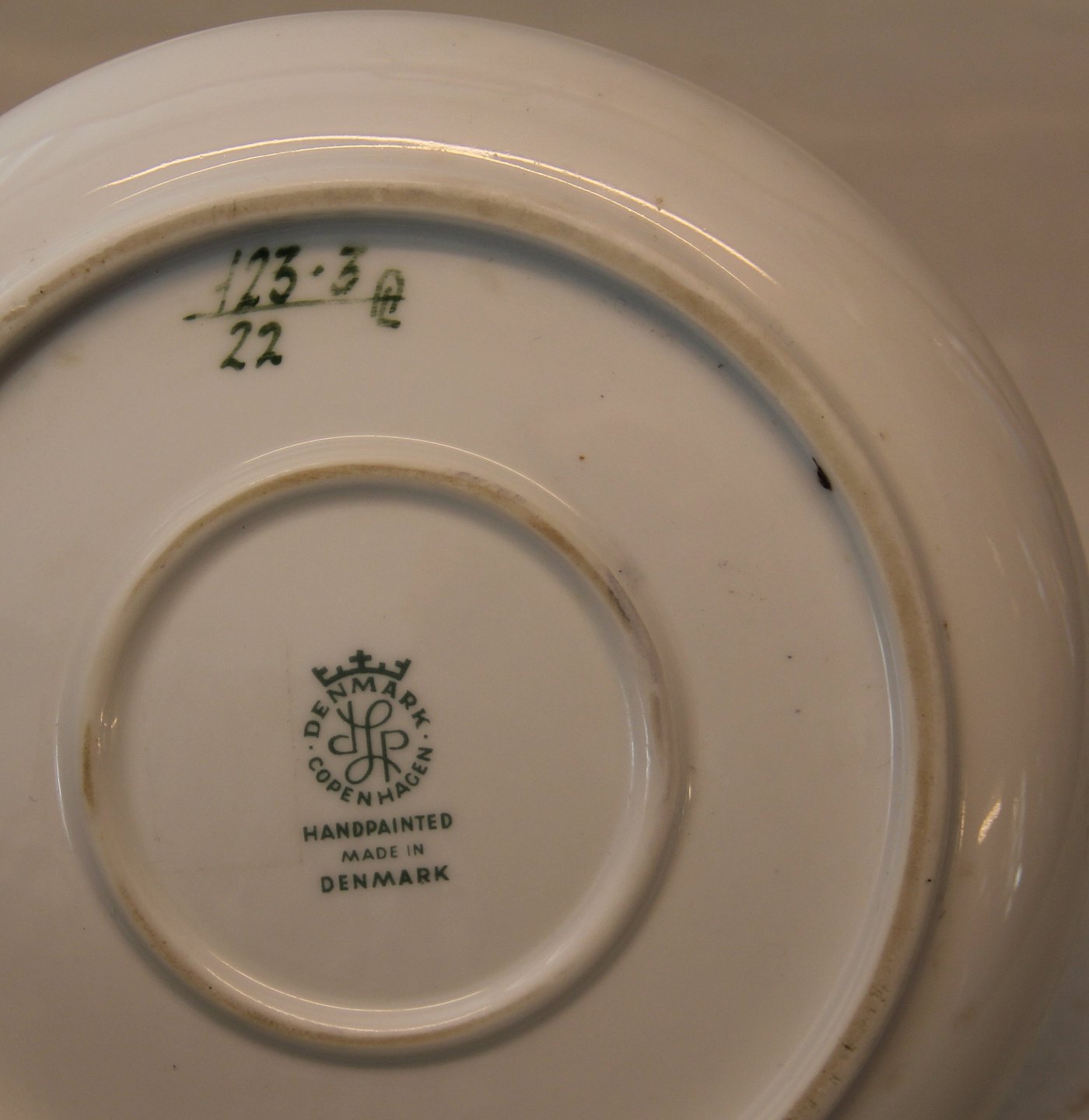 Stemplet med Kongelig Krone, Handpainted, Copenhagen, Made in Denmark. Også kendt som Københavns Porcelænsmaleri (KPM)