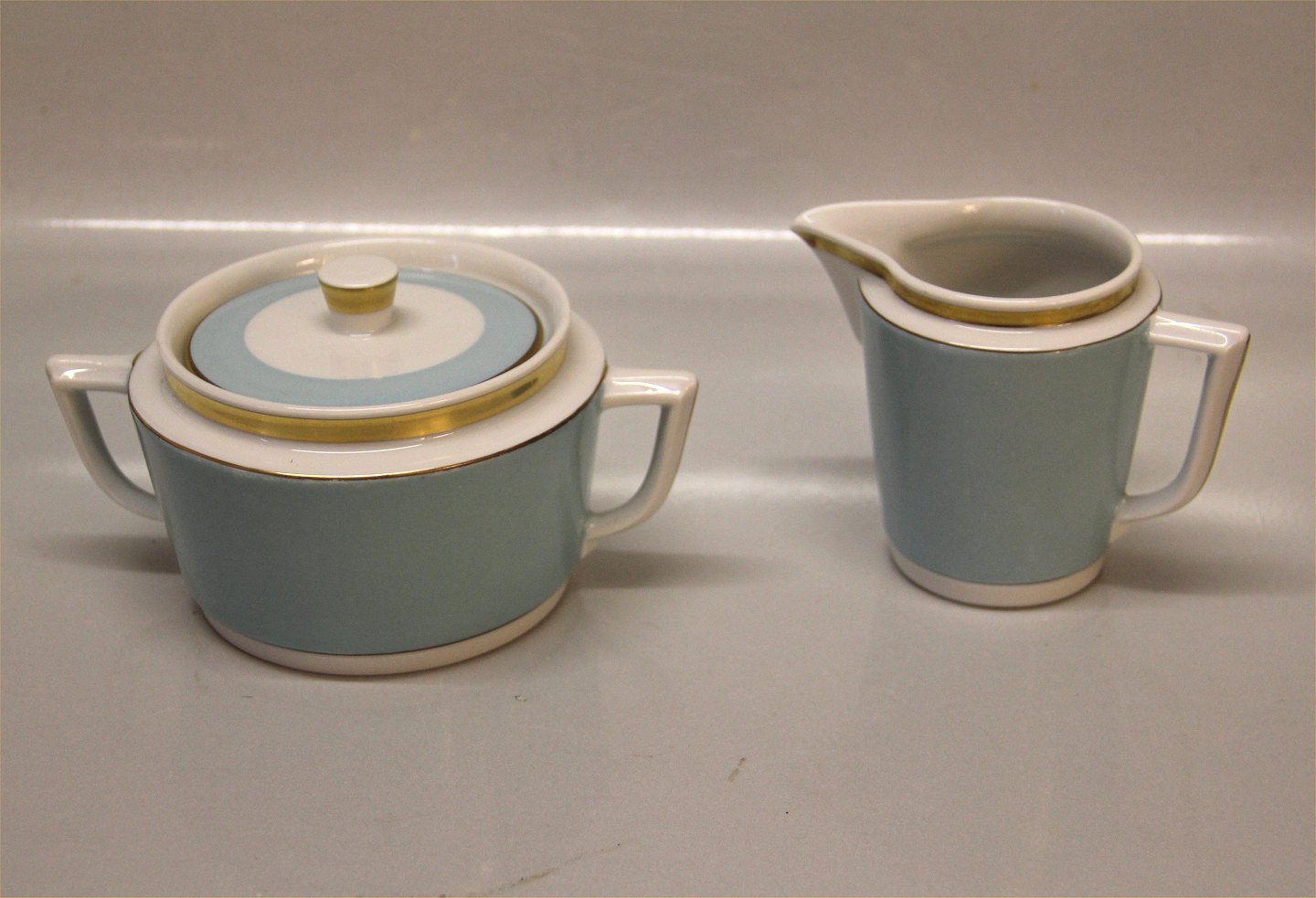 790-9480 Creamer 9 cm Royal Copenhagen Ermelund Light blue Pastel with gold. Design Thorkild Olsen. In mint and nice condition