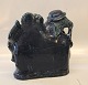 Beskrivelse: Unika Blåglaseret Stentøj Pige med kat 26 x 27 cm Helge Christoffersen Royal Copenhagen stentøj I fin og hel stand Signeret HC