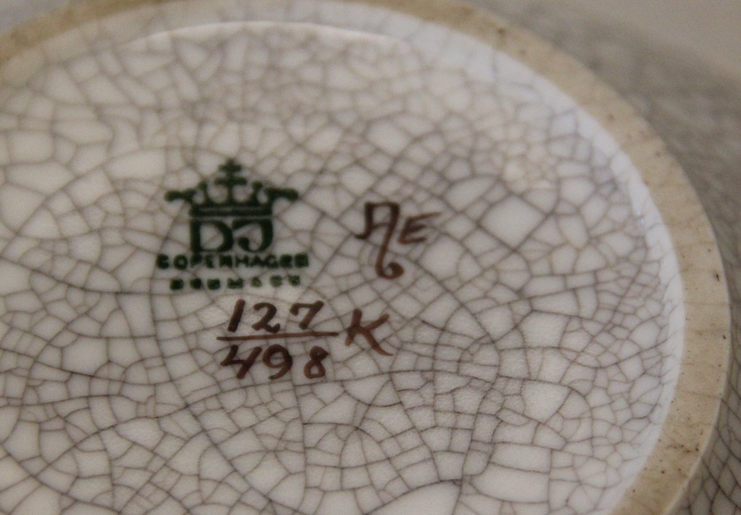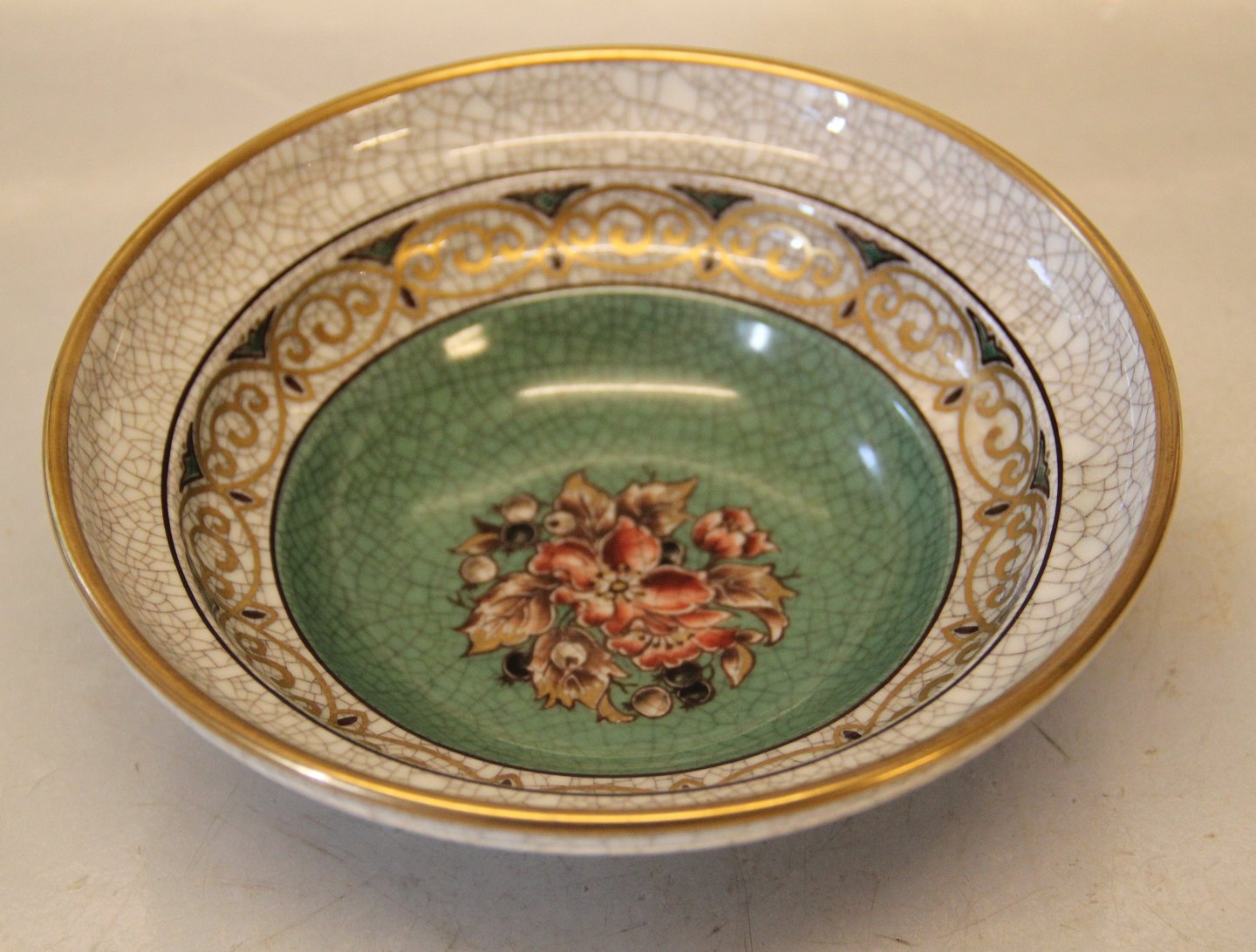 127-498 DJ Grøn Craquelé skål 6 x 18.5 cm med blomster og guld Dahl Jensen