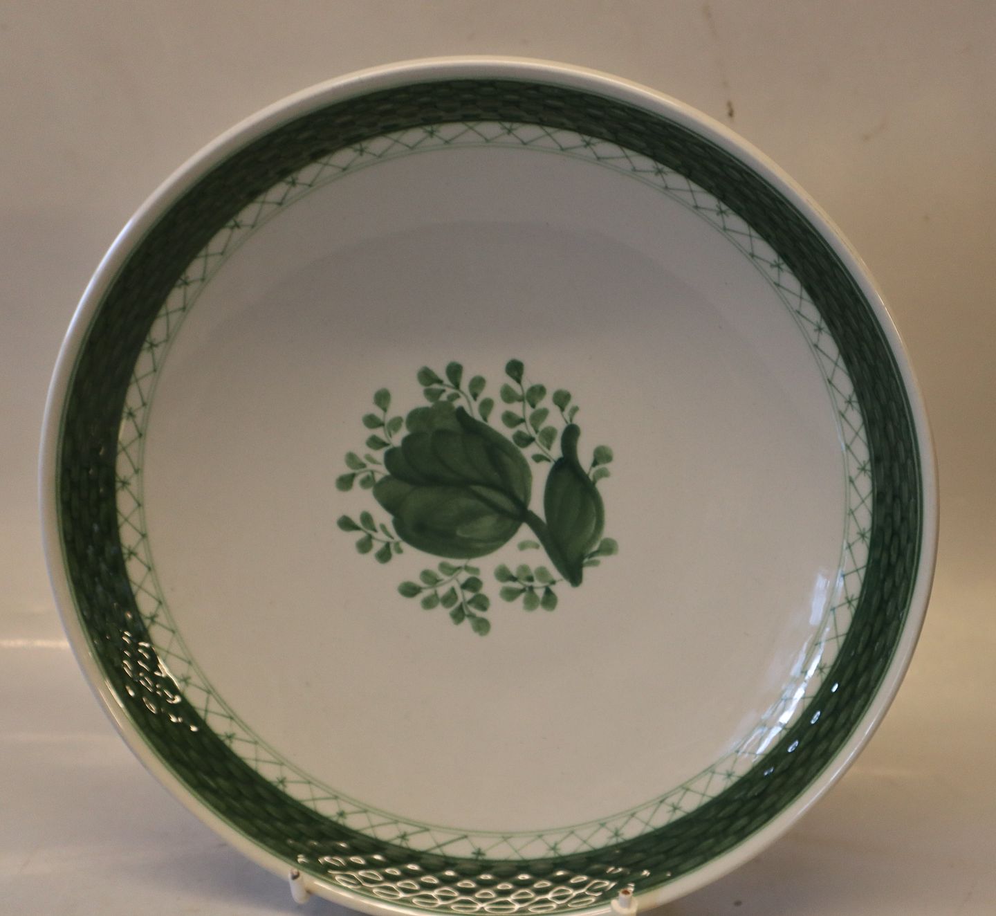 0936-12 Kagefad, rundt 25 cm Royal Copenhagen Aluminia Grøn Tranquebar I fin og hel stand