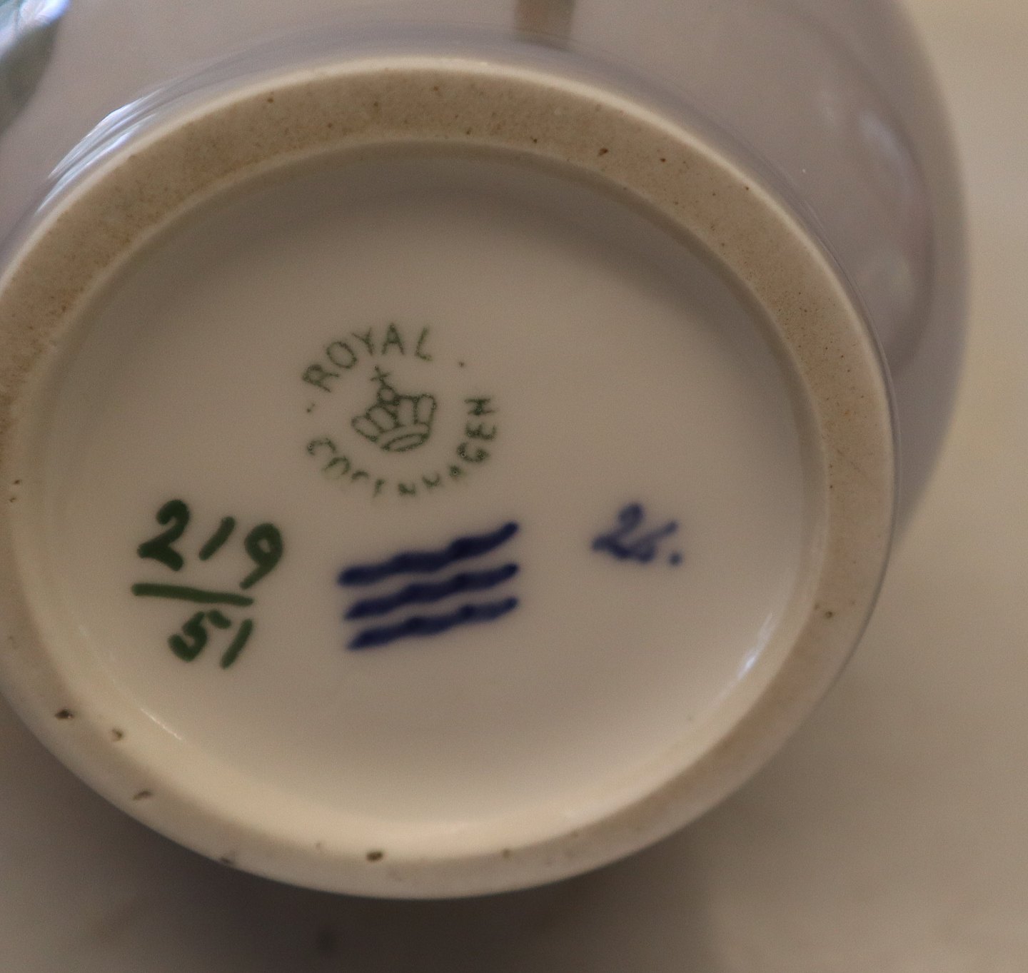 : 219-51 Kgl. Vase med rose 22 cm præ 1923 fra Royal Copenhagen I hel og fin stand