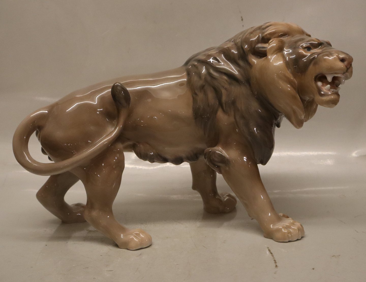 Beskrivelse: Bing & Grøndahl stort kattedyr B&G 2052 Stor stående hanløve 24 x 36 cm I fin og hel stand