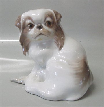 Description: Bing and Grondahl dog 1637 Pekingese sitting Design Dahl Jensen 16 cm Marked with the three Royal Towers of Copenhagen. In mint and nice condition