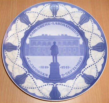 Title / Danish: Carlsberg Laboratorium. Indskrift: CARLSBERG LABORATORIUM J.C. JACOBSEN 2 SEPTEMBER 1811 – 1911. Carlsberg – platter. Bestilt af brygger Carl Jacobsen i anledning af 100 – året for faderen J.C. Jacobsens fødsel den 2. september 1811. Fordelt som gaver fra Carl Jacobsen.