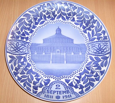 Title / English: The Palm house in the Botanical Gardens in Copenhagen. Inscription: 2 SEPTEMB 1811-1911 and face-to-face monogram JCJ. The palmhouse was designed and donated by J.C. Jacobsne. Carlsberg plate. Commissioned By brewer Carl Jacobsen on the occasion of the centenary of his father J.C. Jacobsen’s birth September 2, 1811. All used as presents from Carl Jacobsen.