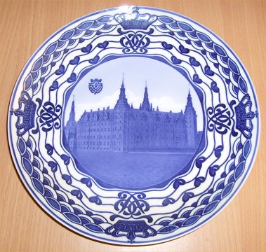 Title / English: Frederiksborg castle. J.C. Jacobsen financed the restoration of the castle after a fire in 1859 and conversion into a museum for Danish national history. Carlsberg plate. Commissioned By brewer Carl Jacobsen on the occasion of the centenary of his father J.C. Jacobsen’s birth September 2, 1811. All used as presents from Carl Jacobsen.