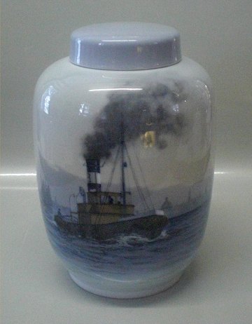 Description: Royal Copenhagen 888 Lidded vase with marine motif. 22 cm