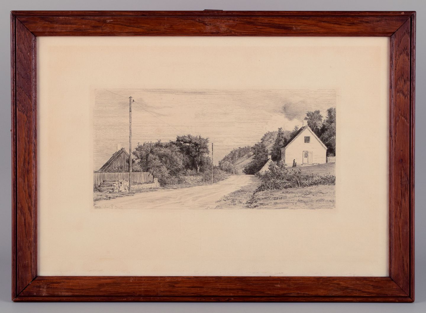 Carl Bloch (1834–1890). Etching. Houses by the road.