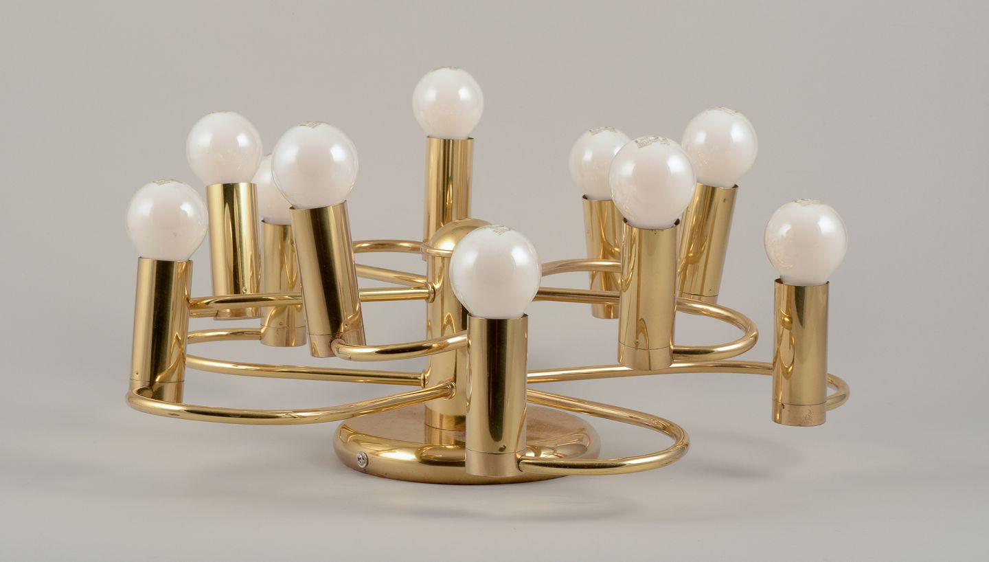 Honsel Leuchten, Germany. Modernist wall/ceiling lamp in brass with ten arms. Sciolari style.