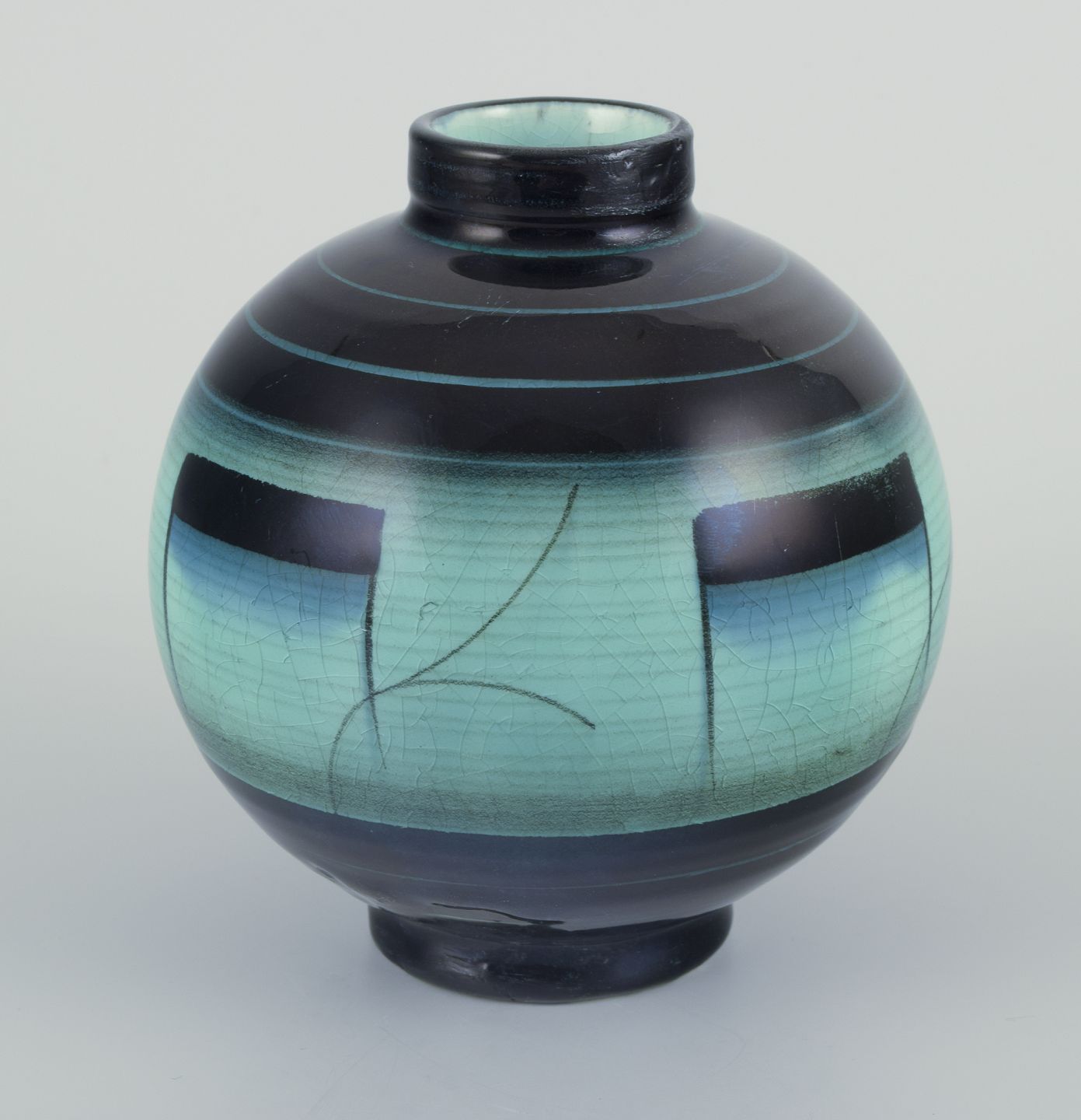 Vase in glazed faience. Art Deco. Bauhaus-inspired decoration.