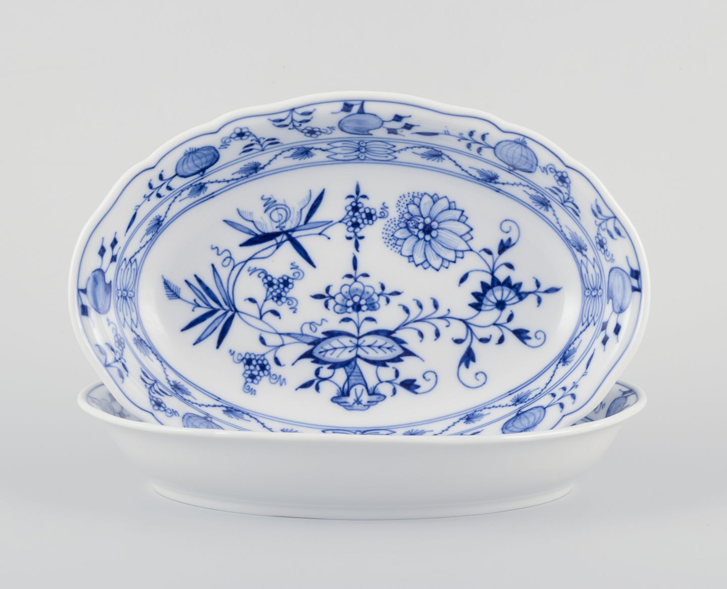 Meissen, Germany. Two oval Blue Onion pattern porcelain bowls.