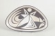 Triangular stoneware bowl/dish with a low profile and a bold graphic abstract decoration in black on a white ground. The design has a clean modernist look with high-contrast shapes and stylised forms. Model 5516, impressed to the base.