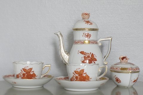 Here you are offered a Herend, Hungary coffeeset. Consisting of a coffeepot, a sugarbowl and 2 coffeecups with saucers. Handpainted with red flowers.