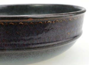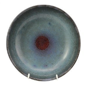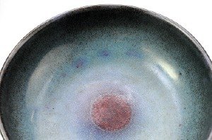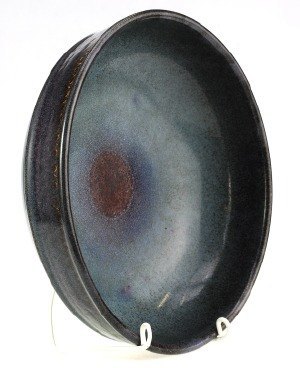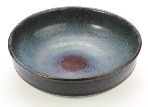 BOWL, art pottery, retro 1960/70, STIG LINDBERG (1916-1982) for Gustavsberg Studio. Fine blue glaze, blue and red circle in the middle. Signed. In good condition. Height 9 cm. diameter 27.5 cm.