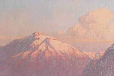 Benito Ramos Catalan (b. Chile 1888, d 1961): Mountains of Chile. Signed Ramos Catalan. Oil on canvas. 50 x 59 cm. The frame is 5cm. wide. In good condition.