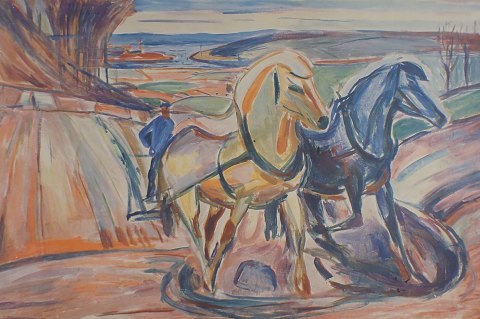 Edvard Munch (1863-1944) "Forårspløjning" Lystryk, nummer 834. Begrænset oplag på 1000 lystryk. 87 x 68 cm. Rammen er 6 cm. bred. I god stand.