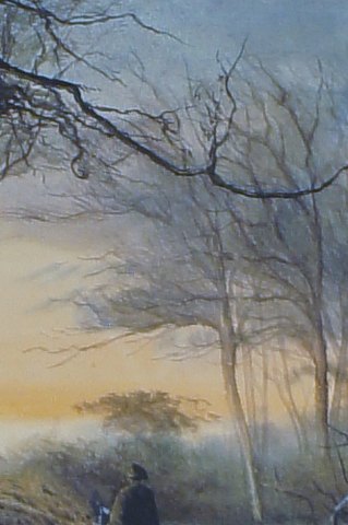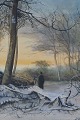 Watercolor on paper. Signed P.D or D.D? Winter landscape, man walking in the forest. Early 20 c. Very detailed watercolor, good quality. 21x32 cm. In good condition. The frame is 4 cm. wide and in good condition.