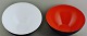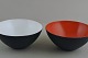 Her tilbydes 2 Krenit skåle af Herbert Krenchel. Sort metal og hvid og orange emalje. 1970'erne. Størrelse: 9 cm. høj. 16 cm. i diameter. I god stand.