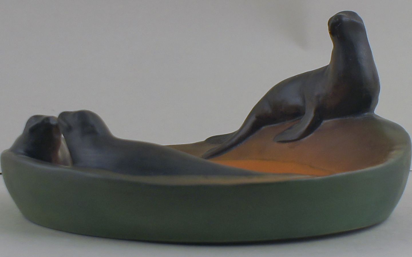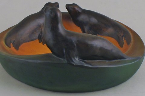 Ipsen's number 148, art nouveau ceramic dish with sea lions. 21 cm. in diameter. In good condition. Hallmarked.