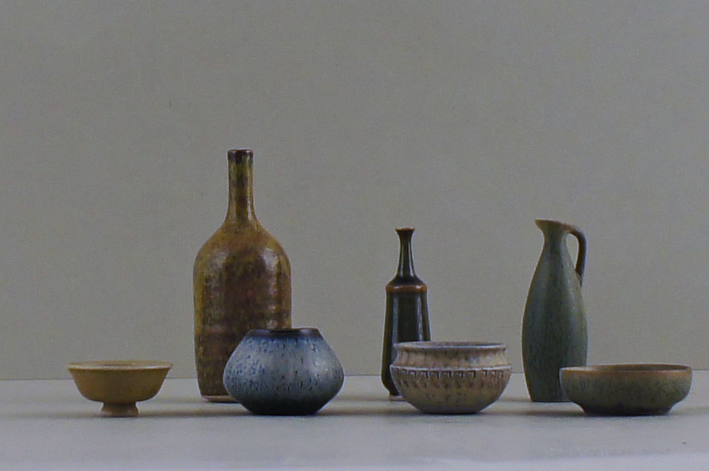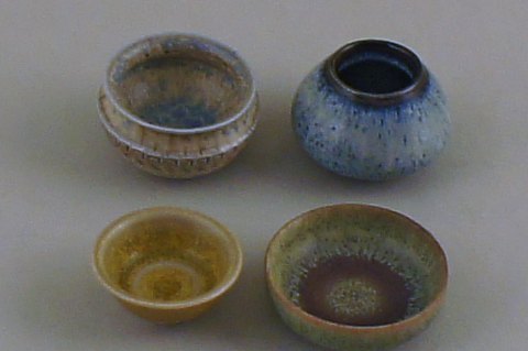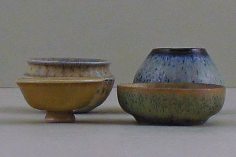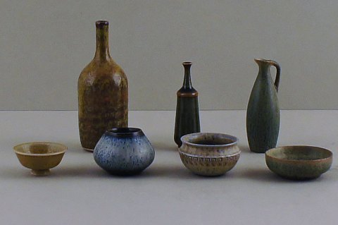 7 Rörstrand m. fl. miniature vaser og skåle i keramik, bla. af Carl Harry Stålhane. I perfekt stand. Første sortering. 7-10 cm. høje. Stemplet. Fra kr. 300 pr. stk.