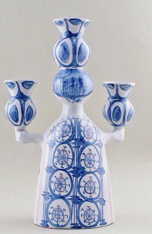 Bjorn Wiinblad, lady, unique three-armed candelabra. In perfect condition. Dated 71 Size: 32 cm. high.