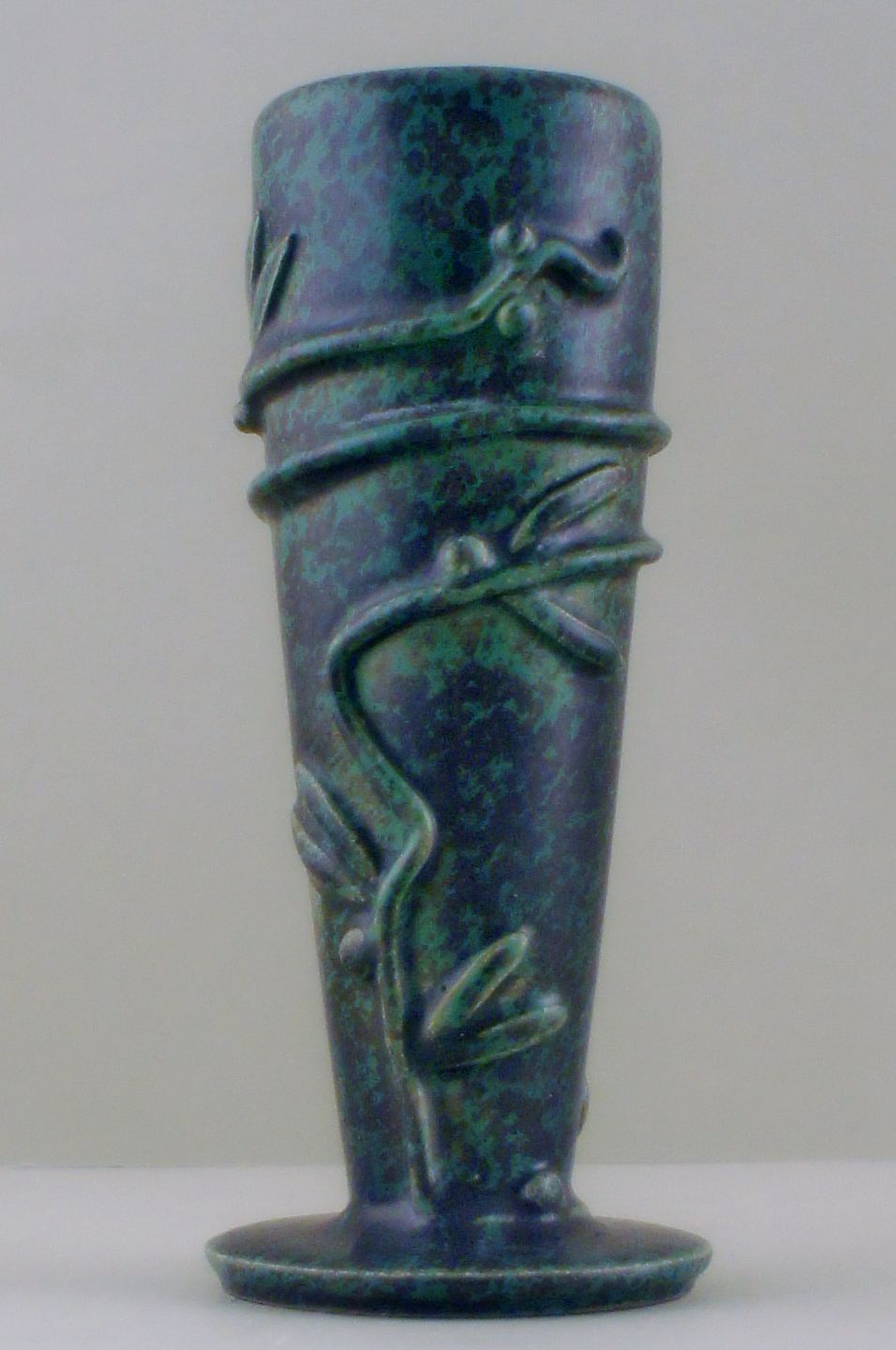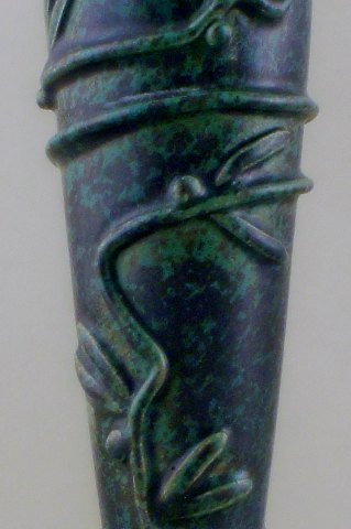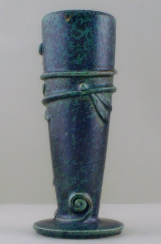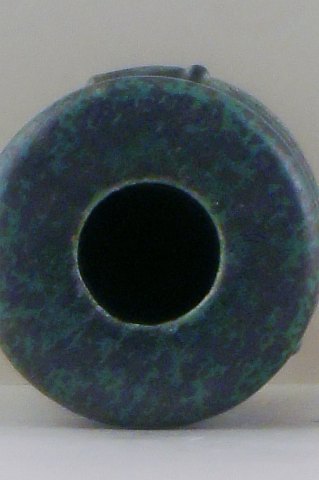Sjælden Arne Bang keramikvase. Unika ? Stemplet AB 1940. Flot glasur i grønne og blå nuancer. I god stand. Højde: 20 cm.