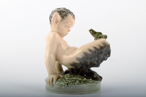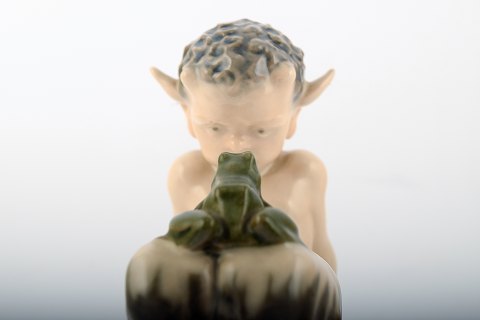 Royal Copenhagen faun with frog. Number 1713. Heights 12 cm. In perfect condition, factory first quality.