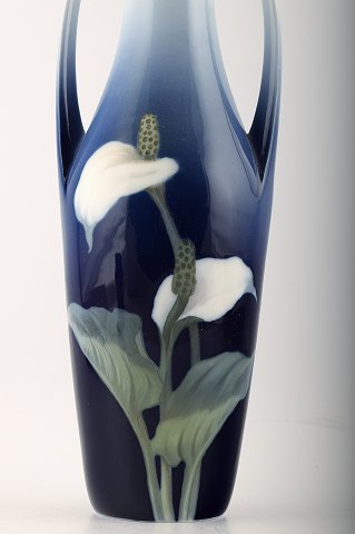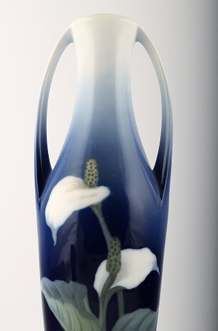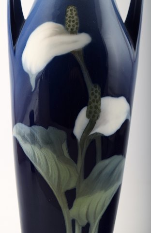Royal Copenhagen Art Nouveau vase, dekoreret med blomster. Måler 32 cm. Anden sortering, i perfekt stand.