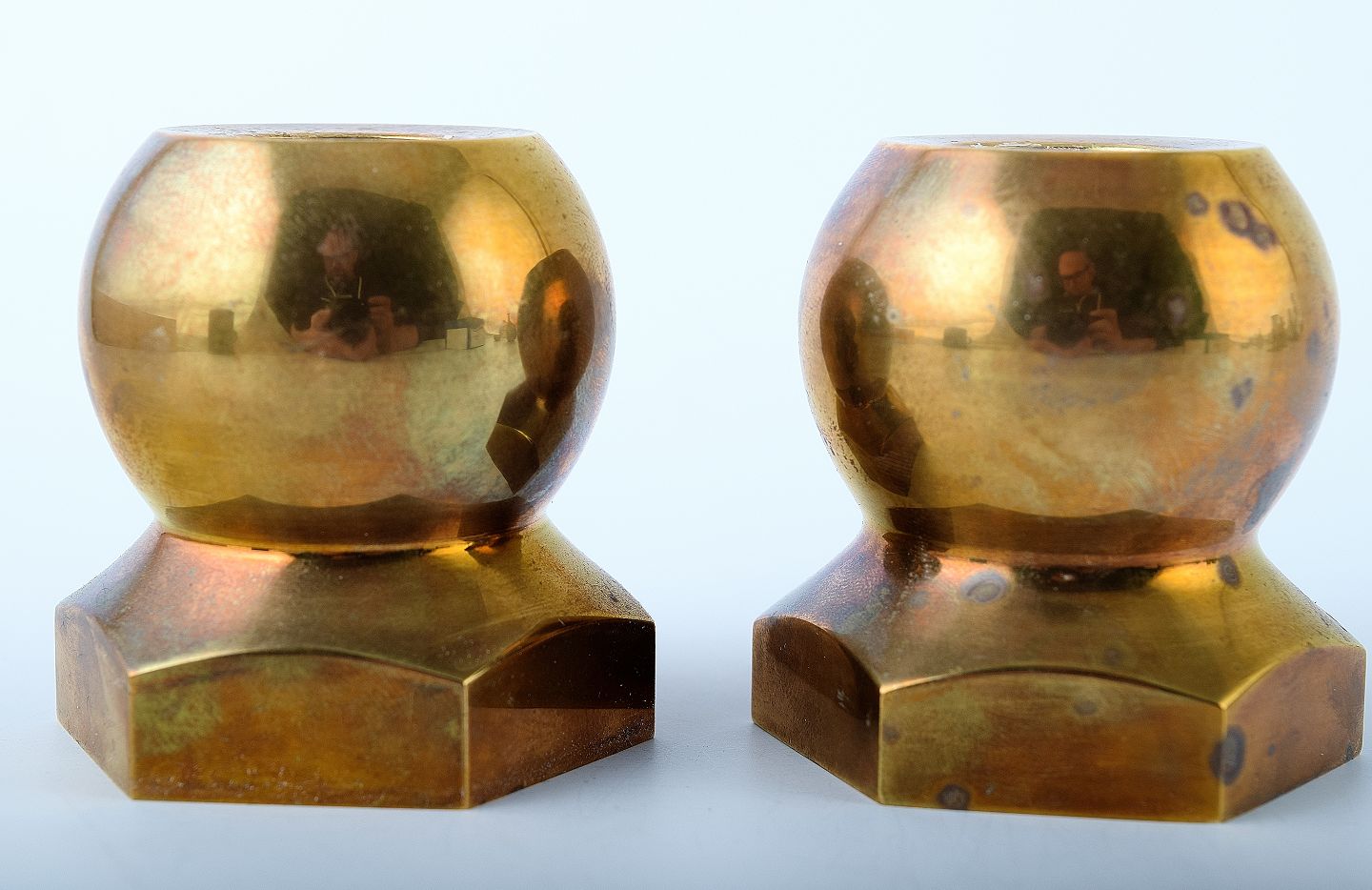 Gusum metal, a pair of candlesticks in brass. Swedish design. 5.5 cm. heights. In perfect condition.
