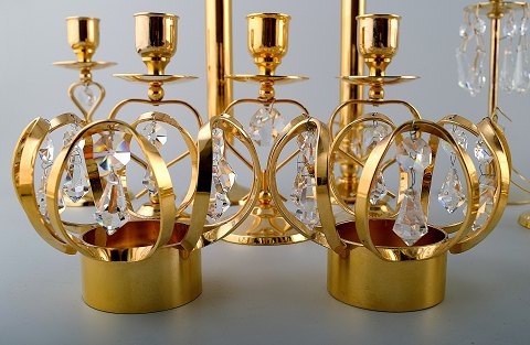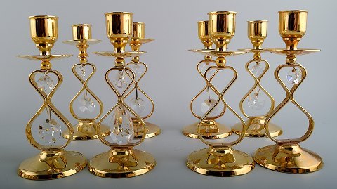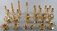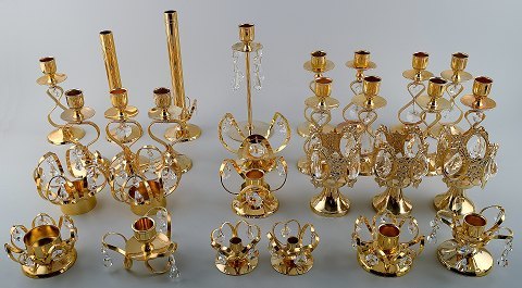 28 dele stager i forgyldt metal til lys og fyrfadslys i Swarovski stil. I perfekt stand. Priser fra kr. 300 pr. par Højeste 16 cm.