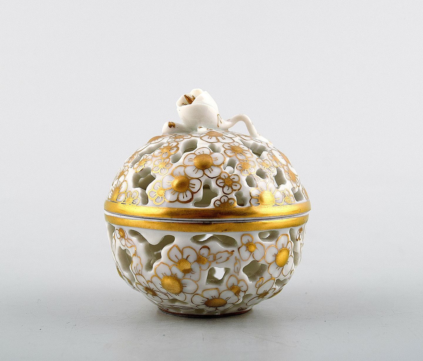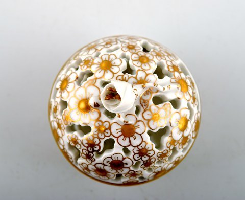 Herend lidded vase decorated with gold, porcelain. Measures 6 x 6 cm. In perfect condition.