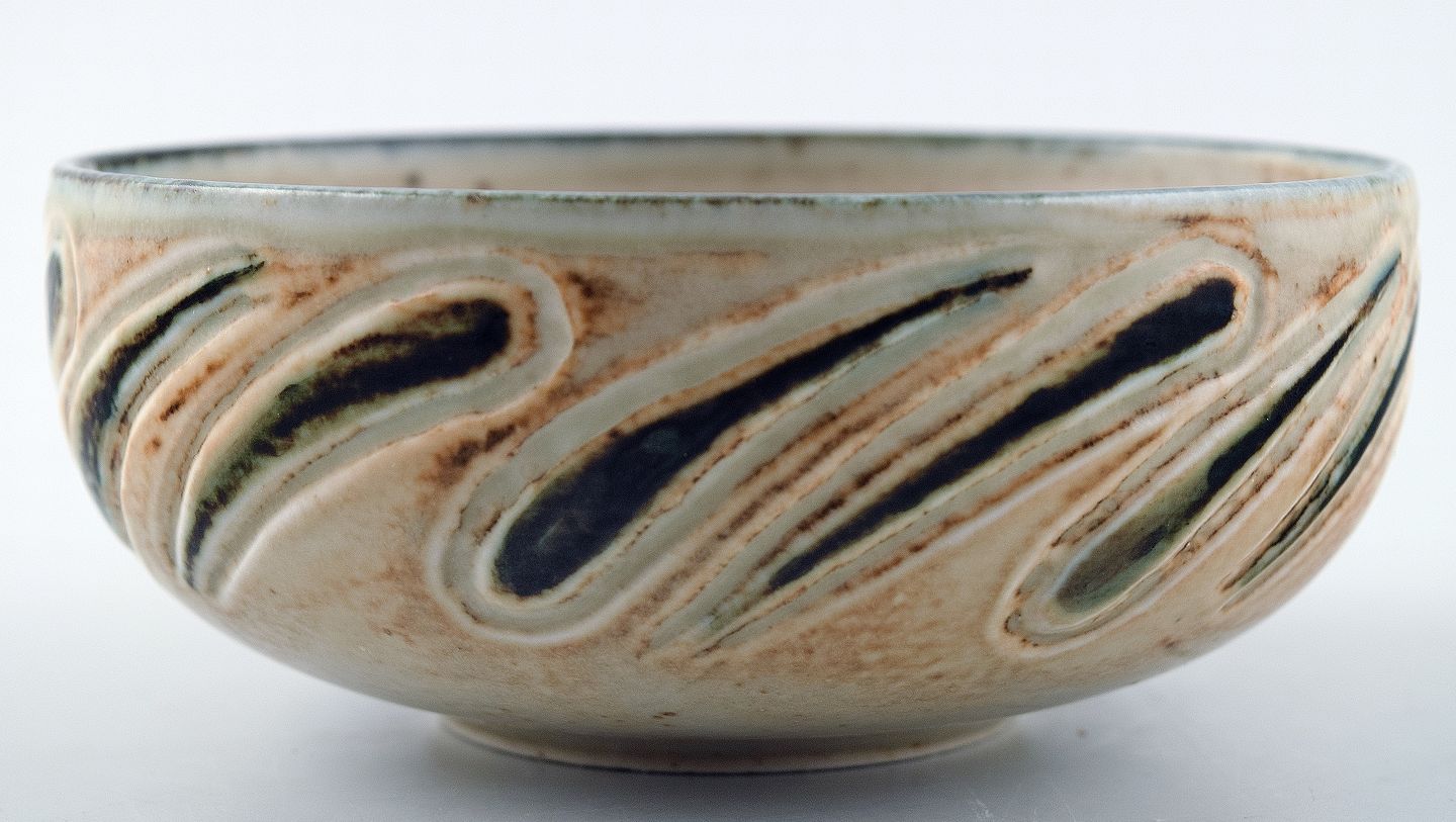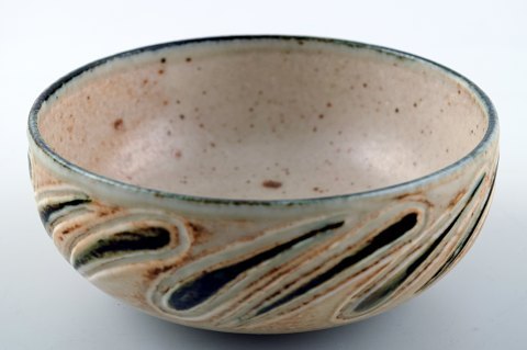 Royal Copenhagen keramikskål af Eva Stæhr-Nielsen. Moderne design, ca. 1970, glasur i blå og grå nuancer. I perfekt stand. 2. sortering. 13 cm. i diameter og 6 cm. høj.