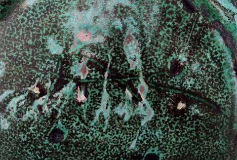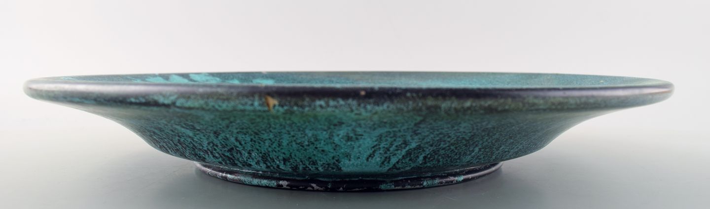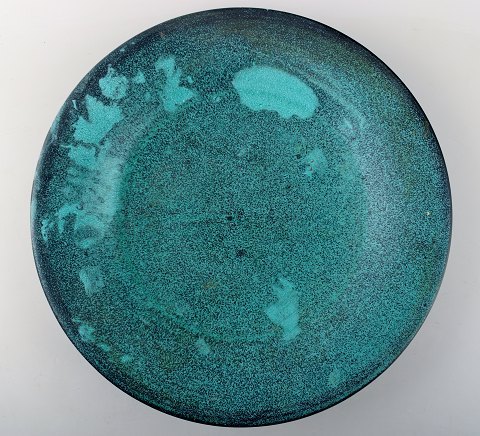 Kähler, HAK, stort rundt glaseret fad, 1930'erne. Designet af Svend Hammershøi. Turkisgrøn glasur. Måler 32.5 cm. Stemplet. I perfekt stand.