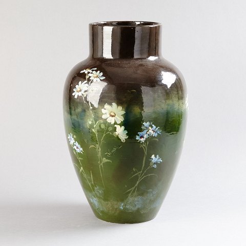Colossal French vase, hand painted with flowers. App. 1910, indistinctly signed. Measures 56 cm. In perfect condition.