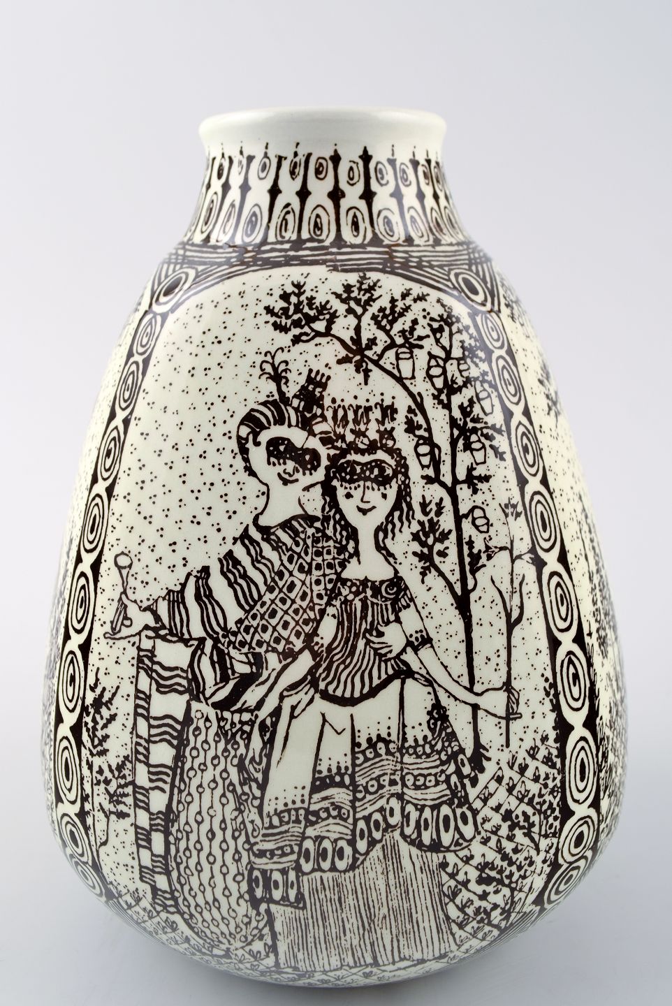 Bjørn Wiinblad, vase, forskellige motiver, fajance. Producent: Nymølle Design: Bjørn Wiinblad Højde : 17 cm. Perfekt stand.