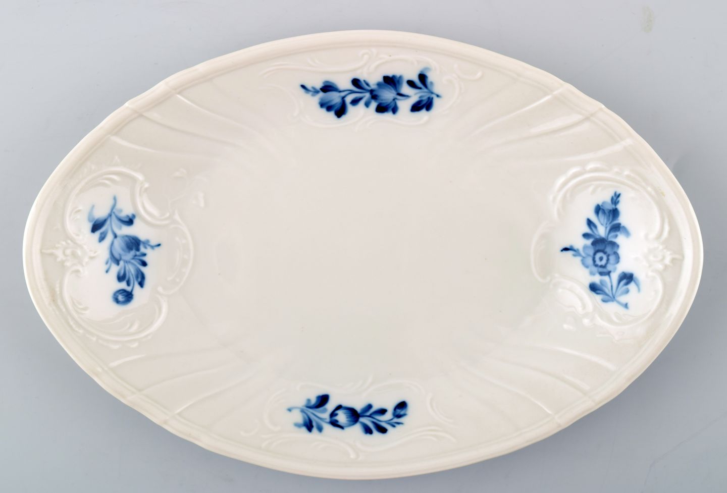 Royal Copenhagen/Kongelig Blå Blomst Juliane Marie, lille fad/asiet. Dekorationsnummer 10/12018. Måler : 22.5x15.5 cm. I perfekt stand, 1. sortering.