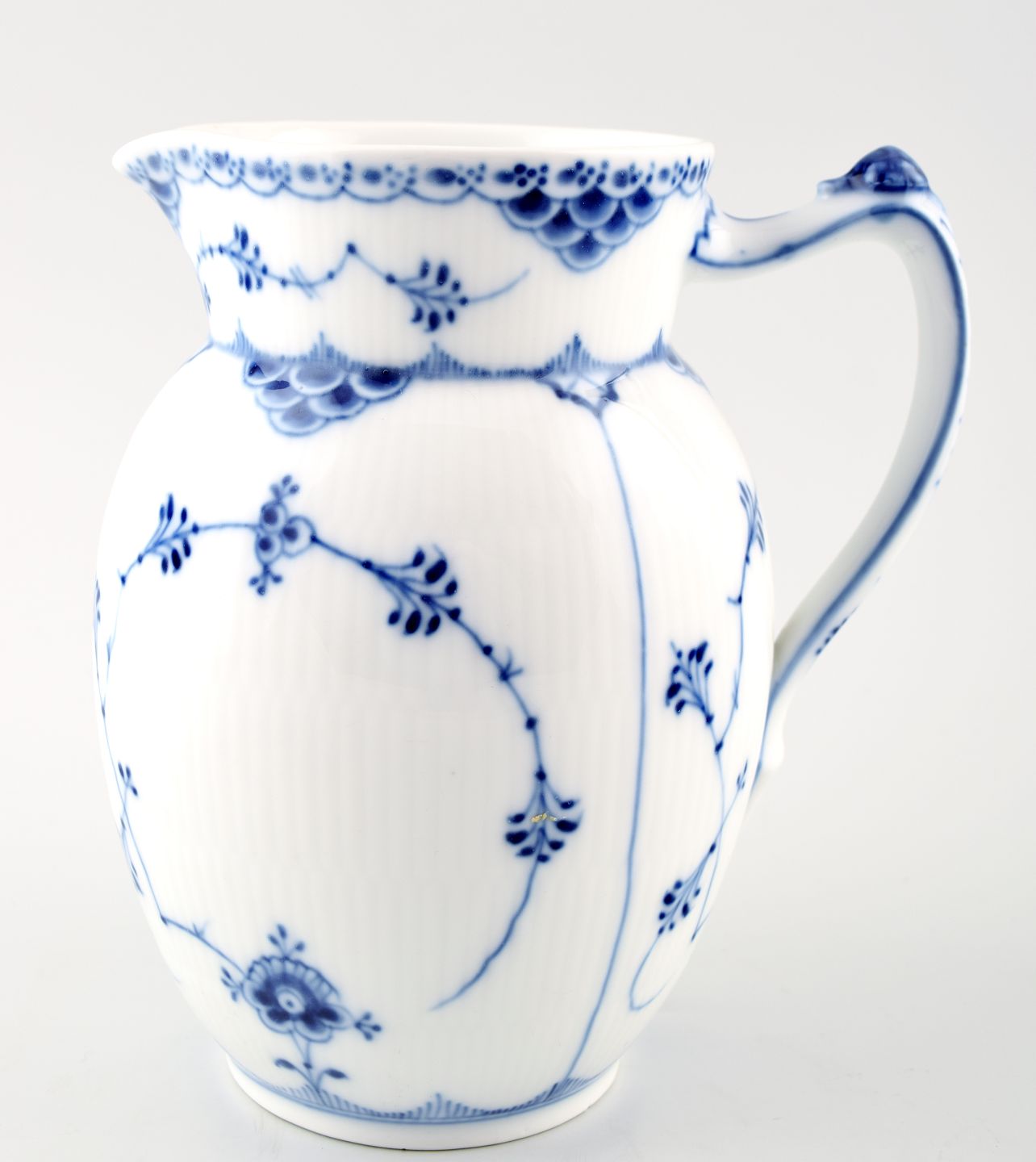 Royal Copenhagen Blue Fluted Half Lace pitcher. Number: 1/562. 1st. factory quality, in perfect condition. Measures 18 cm.