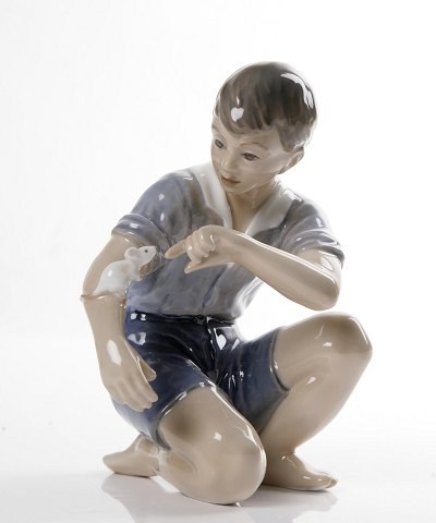 Figur nr. 1270, dreng med mus af Jens Peter Dahl Jensen. Sjælden figur. 1. sortering, i perfekt stand. 19 cm. høj.