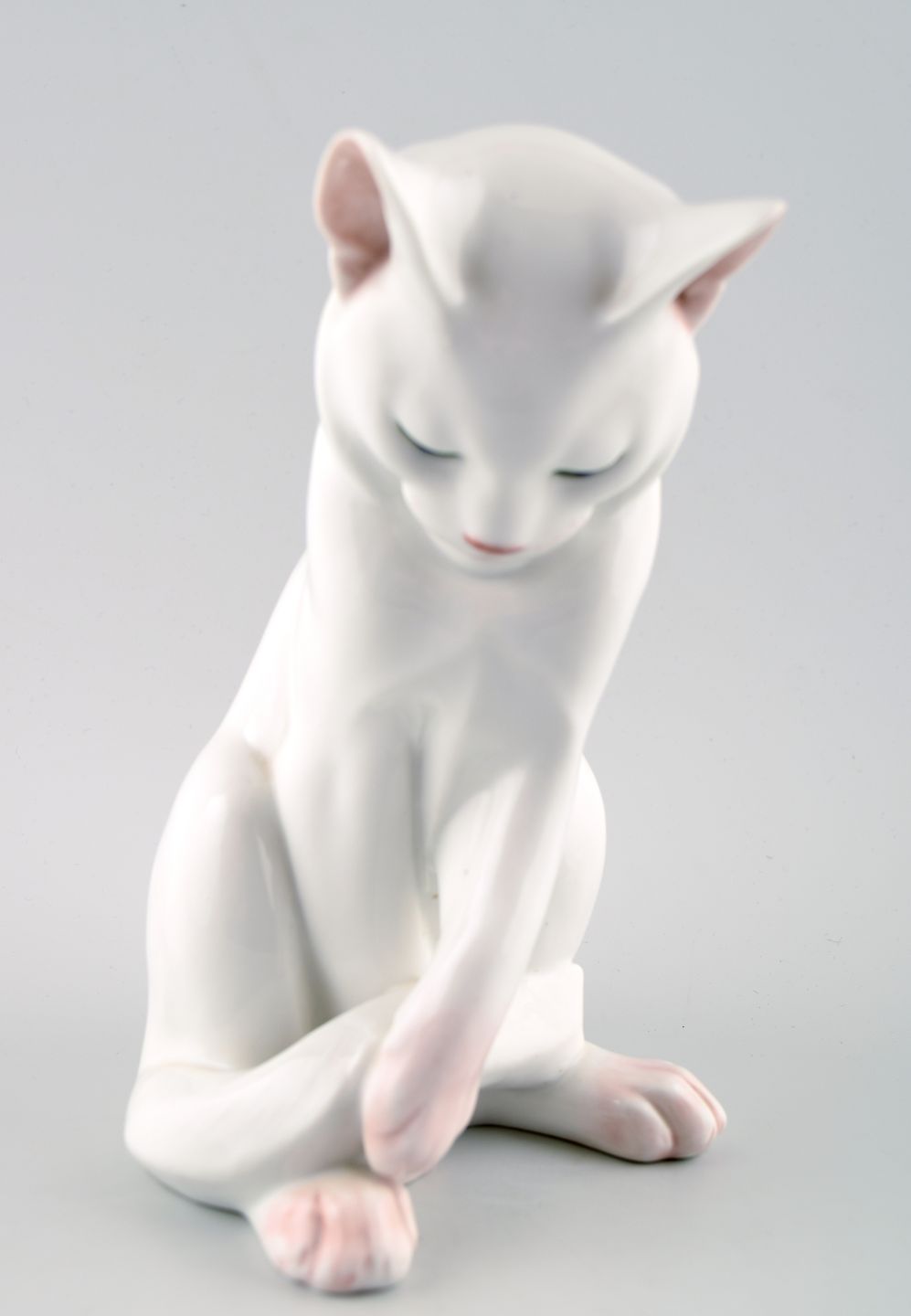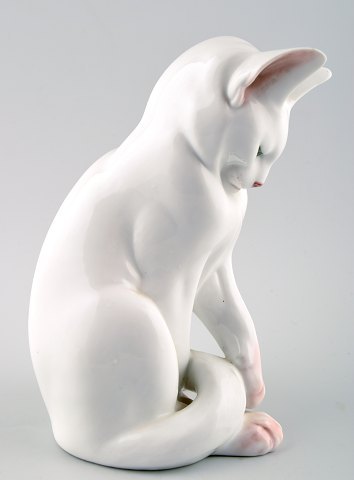 Rare Royal Copenhagen porcelain figure number 307, seated cat. Good condition, second factory. Measures 19.5 cm.