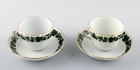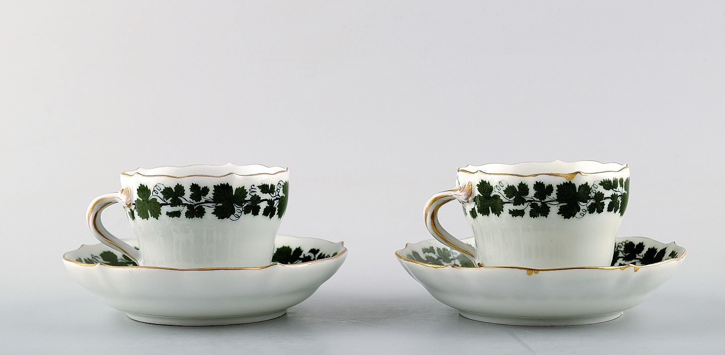 Meissen ivy / vine leaves, 2 sets of coffee cups with saucers. In perfect condition. Measures: 6.5 x 5 cm. Saucer 10.8 cm.