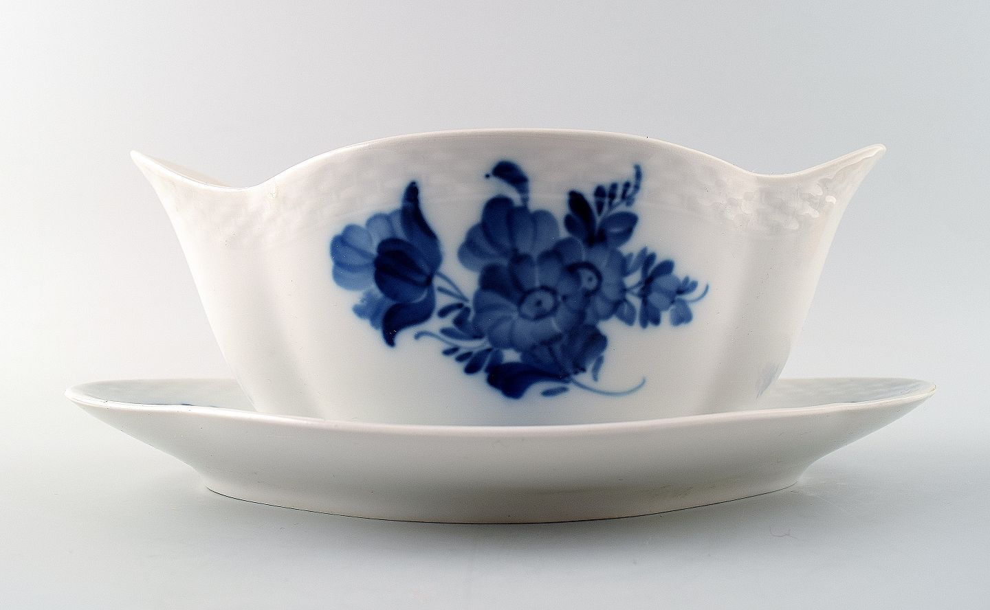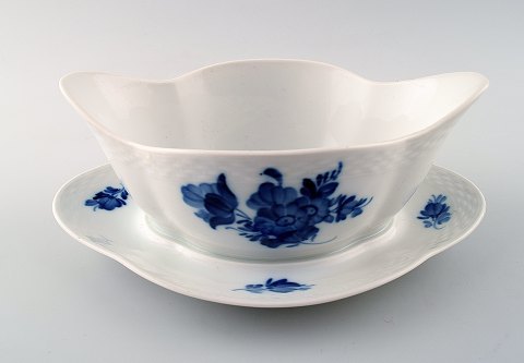 Royal Copenhagen Blue Flower, sauce boat on fixed stand. Decoration number 10/8159. 1st. factory quality. Length 22 cm. Perfect condition.