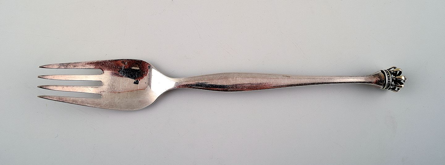 Gaffel "Dansk krone" med kongekrone, sterling sølv. dansk. Stemplet. Måler 19.5 cm.