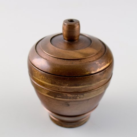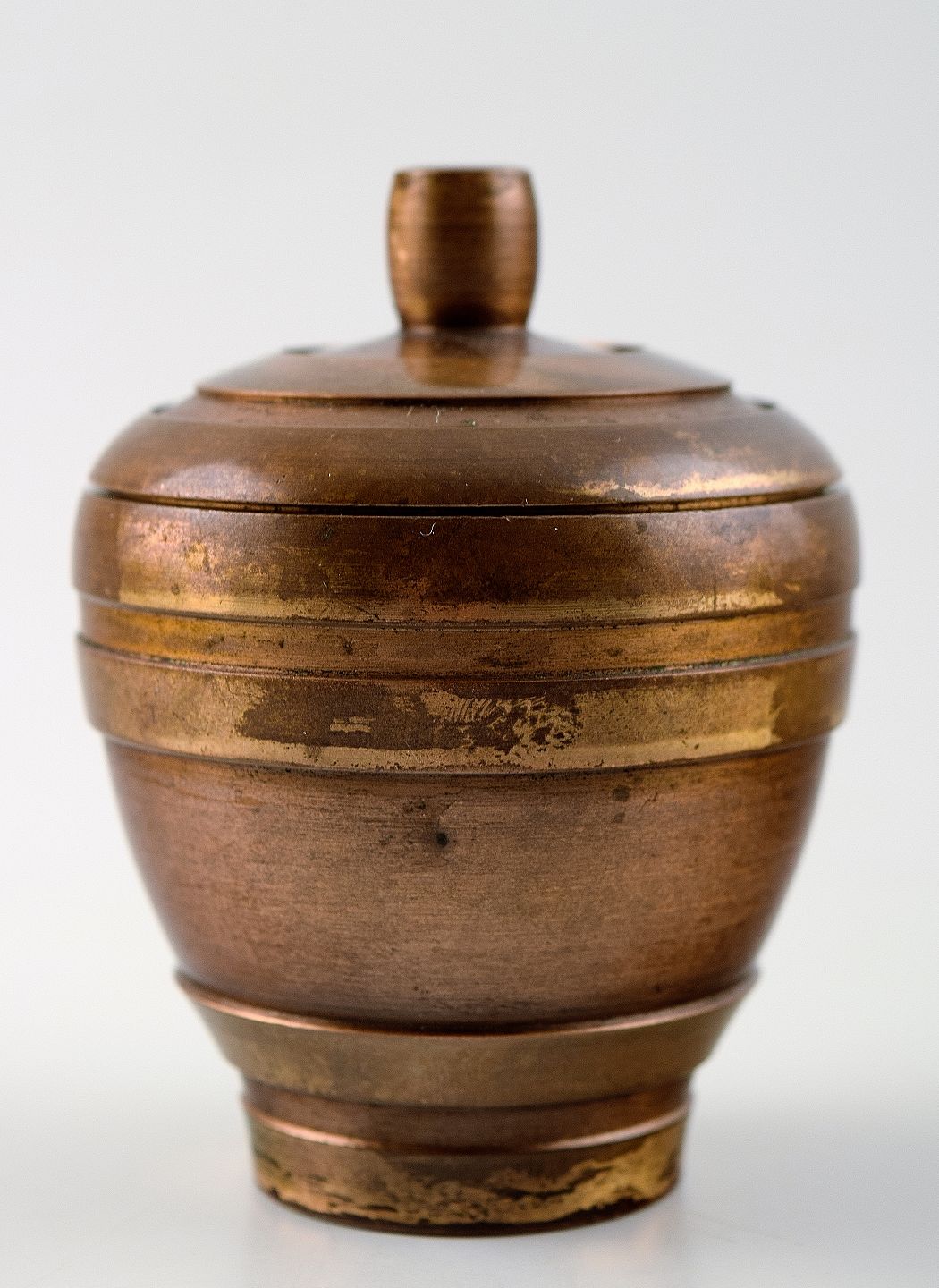 Cawa art deco lidded bronze jar, app. 1940. Danish design. In very good condition. Hallmarked. Measures 8 cm.