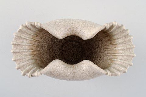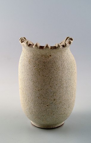 Arne Bang keramik vase. Stemplet AB 179. Glasur i grå nuancer. I perfekt stand. Måler: 13 x 15.5 cm.