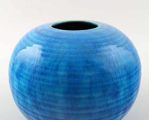 Kähler, HAK, glaseret stentøjvase. I perfekt stand. Flot turkis glasur. Stemplet. Måler 13 x 13 cm.