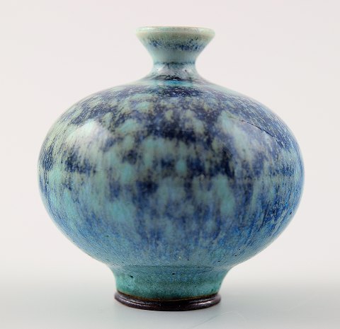 Berndt Friberg Studio keramik vase. Moderne svensk design. Unika, håndlavet. Fantastisk glasur i blå nuancer! Perfekt. 1. sortering. Måler 5 x 5 cm.