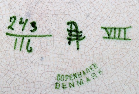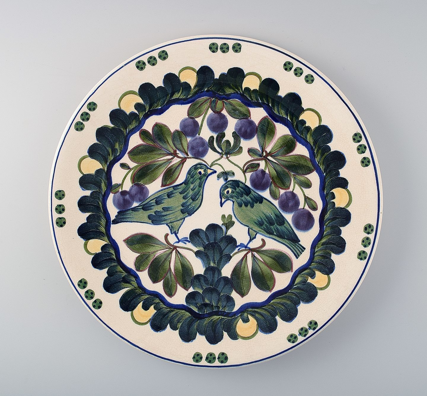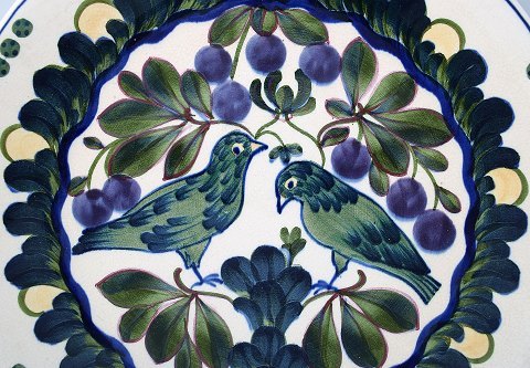 Aluminia stort fad, dekoreret med fugle, tidligt 1900 tallet. Nummer 243/116. Stemplet. I god stand. Måler 29 cm.