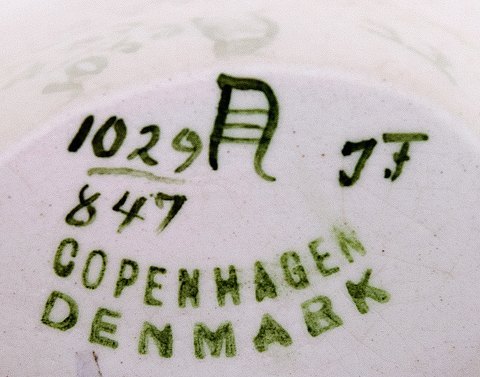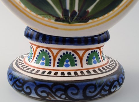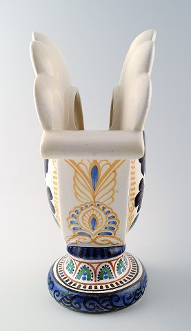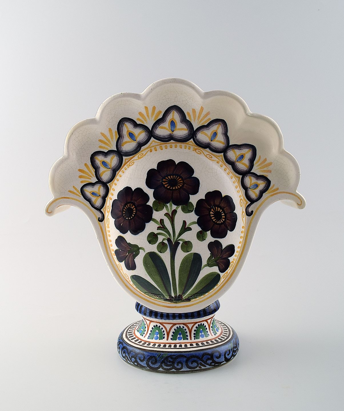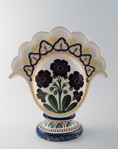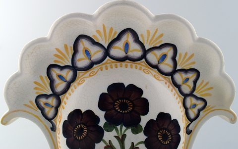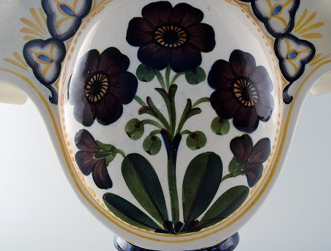 Aluminia Copenhagen faience bouquetiere / vase, hand painted with floral motifs. Measures 22 x 24 cm. Number 1029/847. App. 100 years old. In very good condition. Marked.