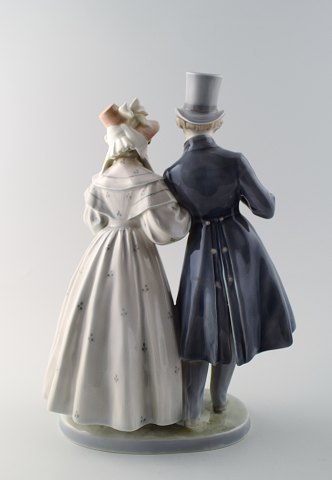 Large Royal Copenhagen figurine, "Evening walk in Tivoli gardens". Decoration number 1593. Height 28.5 cm. width 22 cm. Perfect condition, 1st. factory quality.